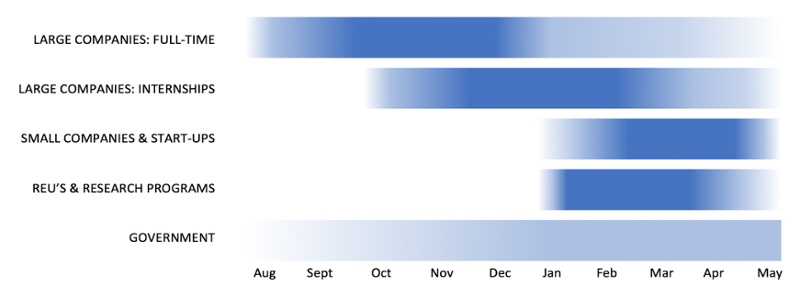 - Employers recruit and hire according to specific cycles that vary by employer and opportunity type. By understanding and adapting your job or internship search strategy to the industry’s recruiting timeline, you are putting yourself in the best position to secure a full-time or summer position